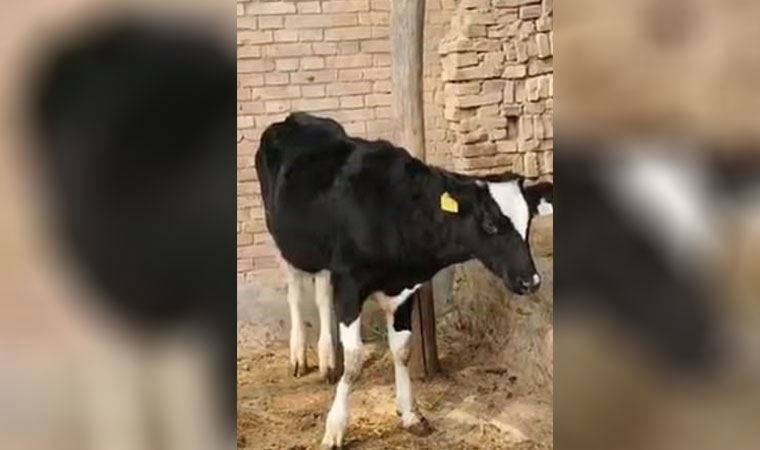 Sık sık mutant hayvanların varlığı ile gündeme gelen Çin'de bu defa 5'inci bacağı olan bir ineğin görenleri şaşırttı.