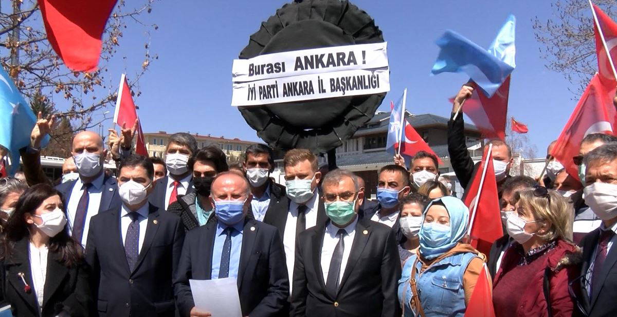 Ankara'da, İYİ Parti İl Başkanı Yetkin Öztürk ve partililer, İYİ Parti Genel Başkanı Meral Akşener ve Büyükşehir Belediye Başkanı Mansur Yavaş'ı hedef alan açıklama nedeniyle Çin Halk Cumhuriyeti Ankara Büyükelçiliği'nin önüne siyah çelenk bıraktı.