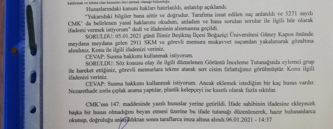 Çıplak aramalara yönelik düzenlenen tutanakta, öğrencilerin bu yöndeki iddialarına da yer verildi. Tutanakta, "Doğruluğu anlaşıldıktan sonra taraflara imzalatıldı" denildi.
