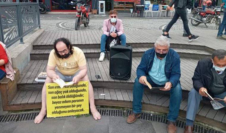Fatsa Cumhuriyet Meydanı’na önceki gün saat 17.15’te gelenler, siyanür kullanarak altın çıkarılmasına tepki olarak çıplak ayakla kitap okudu.