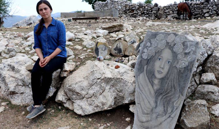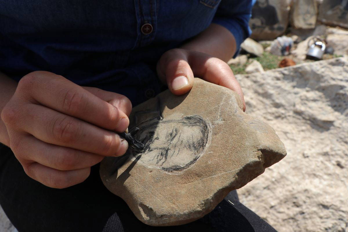 Büşra Öğüt, "Doğada bulduğum şeylerle bir şeyler üretmek beni çok mutlu ediyor. Özgür hissettiriyor kendimi. Bu yüzden doğada bulduğum materyallerle taşların, ağaçların üzerine çizimler yapıyorum. Bu şekilde bir şeyler ortaya koymaya çalışıyorum" dedi.
