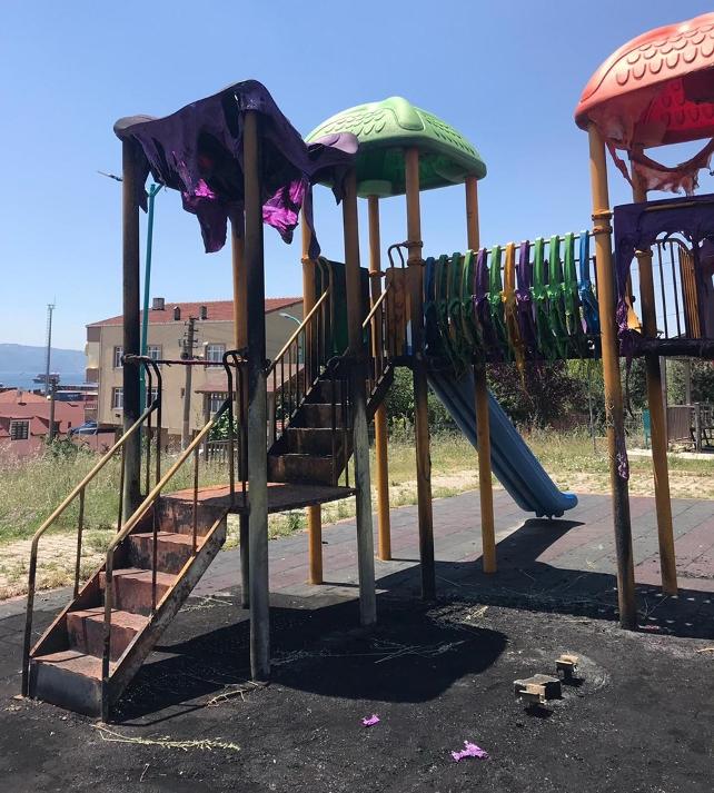 Kirazlıyalı Mahallesi Muhtarı Ahmet Mızrak, “Çocuk parkı bir süre önce yenilenmişti. Magandalar tarafından benzin dökülüp yakılmış. Çocukların oyun alanlarını ellerinden alıyorlar” dedi.