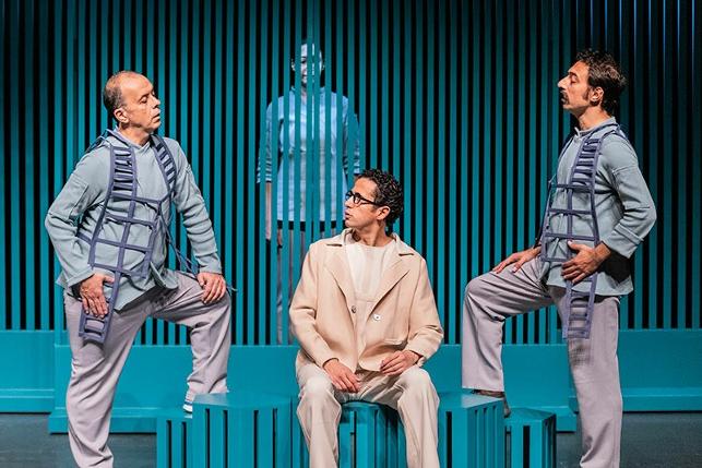 Oyunda K’yı birbirini izleyen grotesk sahnelerle cezaya suç arayan adalet sisteminin döngüsü içinde yuvarlanıp dururken izleriz. K’nın suçunu bilmediği için onu neyle savunacağını bilmeyen savcı, onun kendini savunabilmesi için suçlu olduğunu kanıtlamaya çalışan avukat, divaya dönüşen hakim hepsi vardır bu absürt adalet sisteminde. K dava yüzünden işinden de atıldıktan sonra adalet sarayının koridorlarında hayalet gibi dolanır. İtiraz ediyorum diye bağırarak bir davadan ötekine koşturan avukata, ona ağır dosyaları oradan oraya taşıtan savcıya hiç kimseye sesini duyuramaz. Savcılara göre kurtulabilmesi için ya ya cari beraatı ya da muallak mahkemeyi seçmesi gerekir.Cari yani sahte beraat aynı suçtan yeniden yargılanmasına yol açacak, muallak mahkeme davasını sürüncemeye alacaktır.