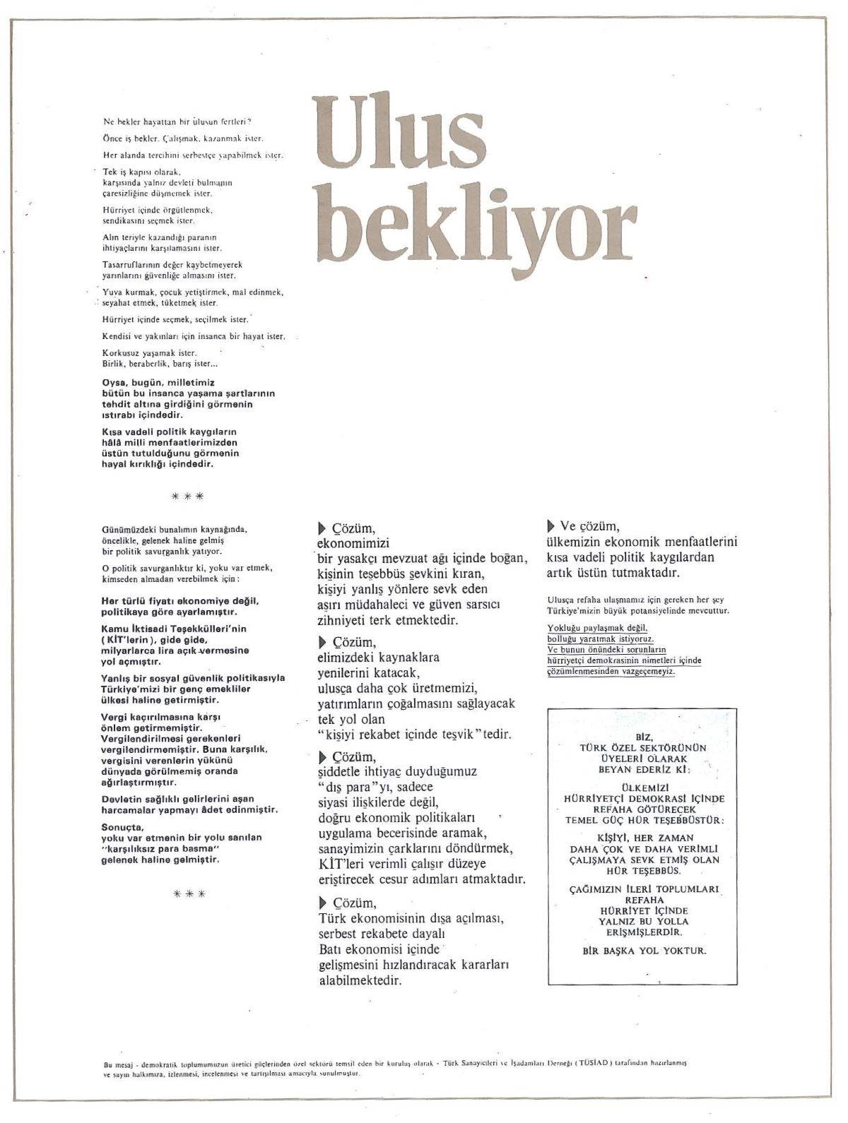 Üç hafta sonra, Turgut Özal’ın Başbakanlık Müsteşarlığı’na atandırılmasıyla, Türkiye’de “muhafazakâr devrim” sürecinin başlamasına mı karar verilmiştir? Yoksa Türkiye bu yola girmesi için zorlanmış mıdır?