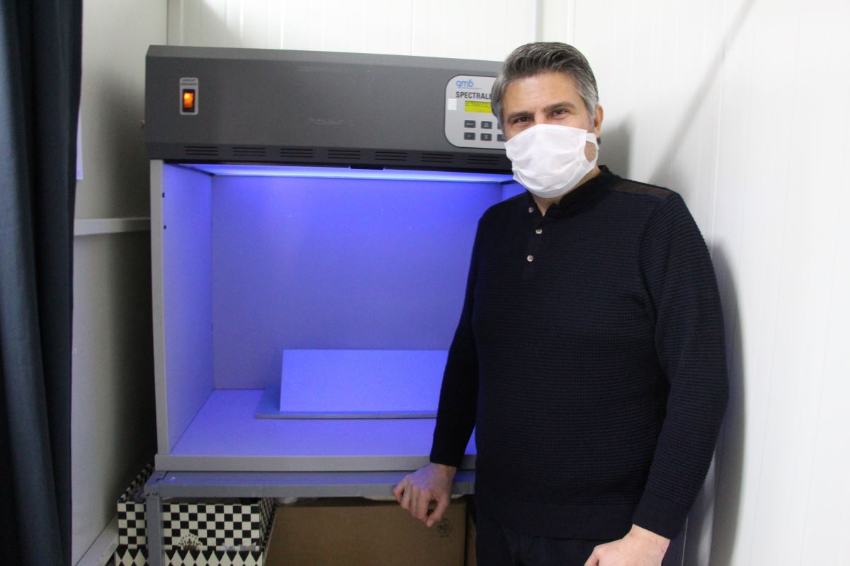 Denizli'de Organize Sanayi Bölgesinde bir tekstil firması yıllardır kullandığı cihaz ile ilginç bir durumu fark etti. Tekstil firmasında ürünlerin son renk kontrollerinin yapıldığı kabinde çalışan işçiler, koronavirüs hastalığı atlatan bir çalışanın cihaz başında çalışırken tırnak diplerinde beyazlık oluştuğunu fark etti.