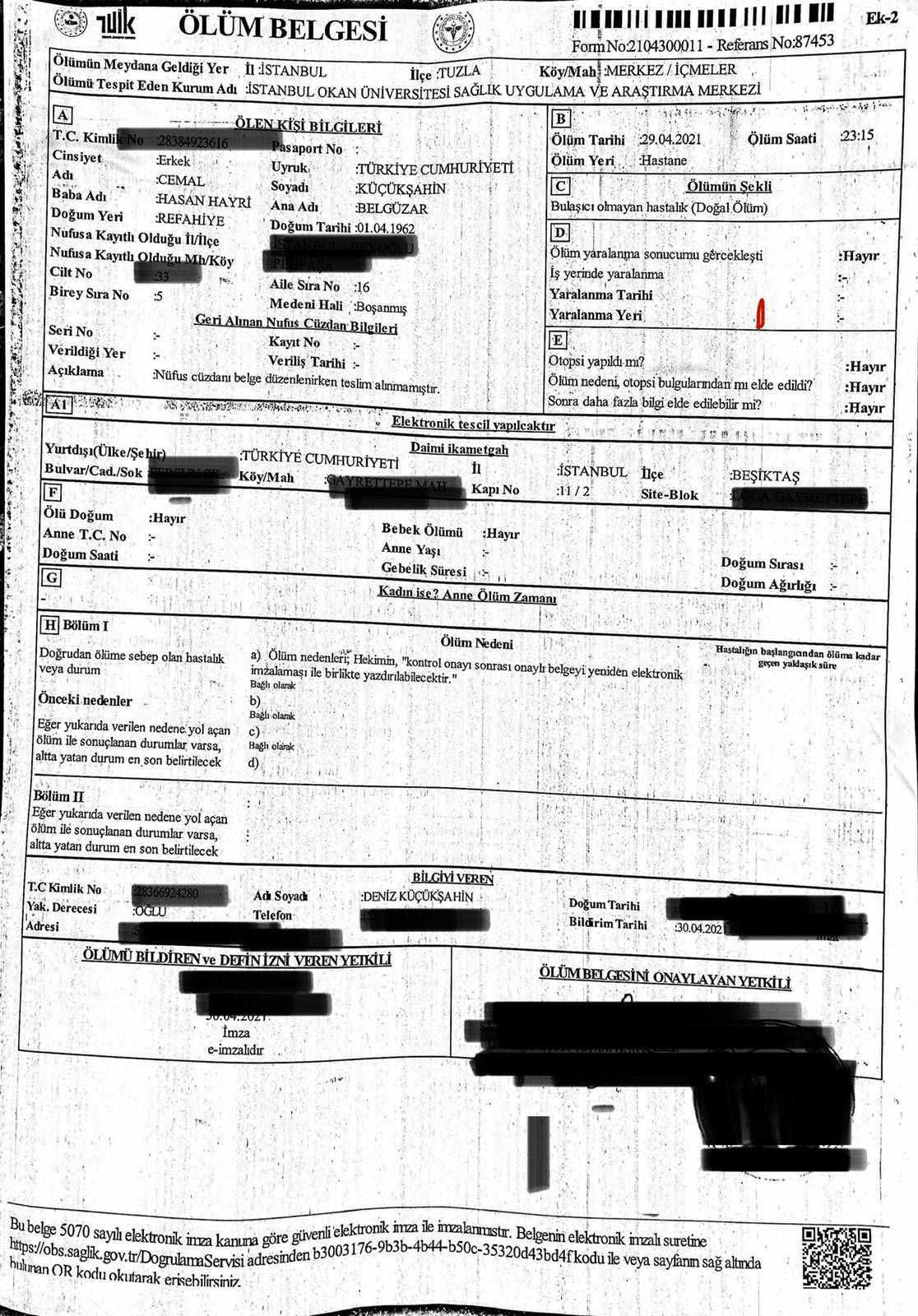 Koronavirüse yakalandıktan 25 gün sonra, 'Sitokin Fırtınası' nedeniyle yaşama veda eden Cemal Küçükşahin’in (59) ölüm raporuna 'bulaşıcı olmayan hastalık' (doğal ölüm) yazıldı. İBB Medya İlişkileri Koordinatörü Küçükşahin, duruma tepki göstererek, "Bu kandırmaca değil mi, devlet bize karşı buna neden ihtiyaç duyar? Neden bu aldatmaca?" diye tepki gösterdi.