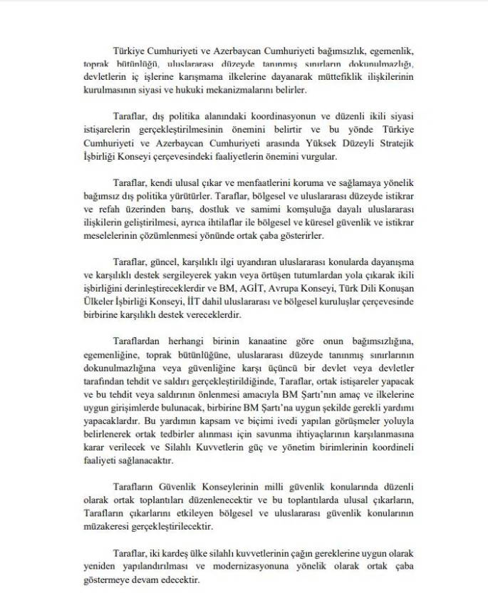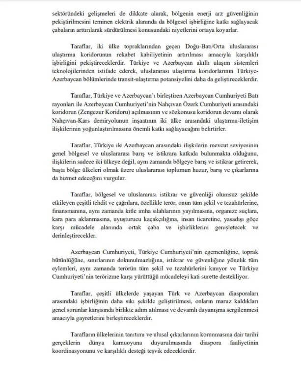 Taraflar, Türkiye-Azerbaycan ilişkilerinin daha da genişletilmesi ve derinleştirilmesi perspektiflerini her yönüyle inceleyerek beyan eder.