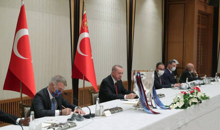 Türkiye Cumhurbaşkanı Recep Tayyip Erdoğan, Trabzonspor Futbol Kulübü Başkanı Ahmet Ağaoğlu ile yönetici, teknik heyet ve futbolcularını kabul etti.