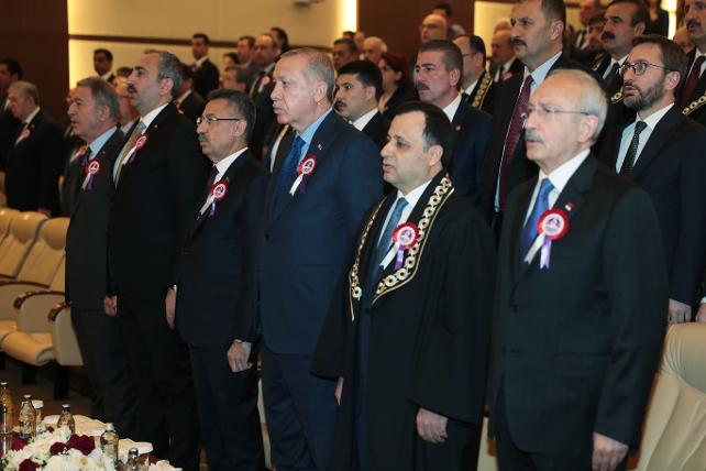 Anayasa Mahkemesi (AYM) Yüce Divan Salonu'nda düzenlenen Anayasa Mahkemesi'nin 57. Kuruluş Yıl Dönümü Programı'na Cumhurbaşkanı Recep Tayyip Erdoğan, TBMM Başkanı Mustafa Şentop ve CHP Genel Başkanı Kemal Kılıçdaroğlu da katıldı.