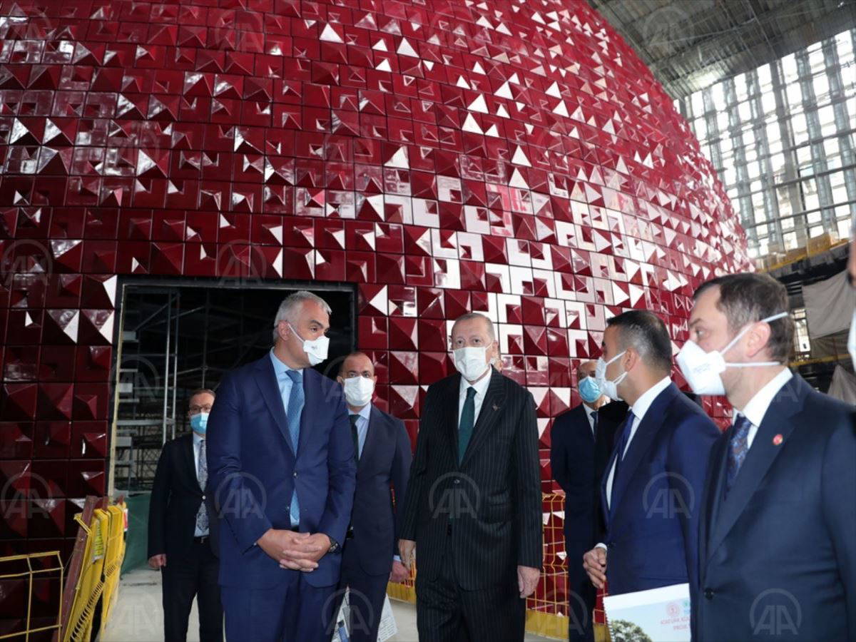 Cumhurbaşkanı Erdoğan, yapımı devam eden Atatürk yeni Kültür Merkezi'nde (AKM) incelemelerde bulundu. Erdoğan'a, Kültür ve Turizm Bakanı Mehmet Nuri Ersoy (önde solda), Vali Ali Yerlikaya ile İstanbul Emniyet Müdürü Zafer Aktaş da eşlik etti.
