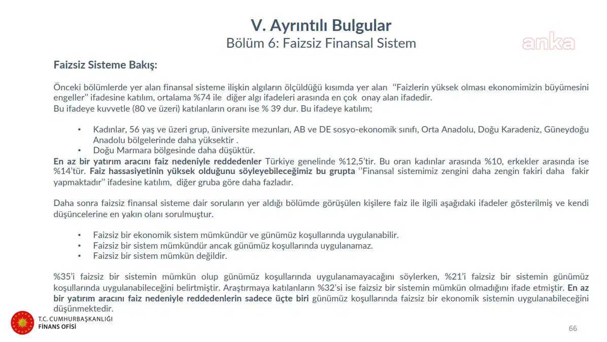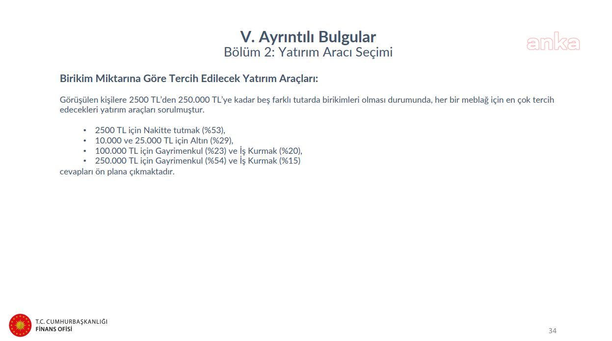 Cumhurbaşkanlığı Finans Ofisi’nin yaptığı Türkiye Hanehalkı Finansal Algı ve Tutum Araştırması’na 49 ilde 15 bin 41 kişi katıldı ve sonuçlarının Türkiye’nin genelini yansıttığı belirtildi.