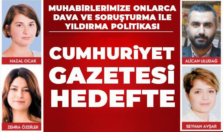 Her dönem siyasi ikti- darların hedefi olan Cumhuriyet, yargının sopa niyetine kullanıldığı şu günlerde de muhabirlerine açılan tazminat ve ceza davalarıyla susturulmaya çalışıyor.