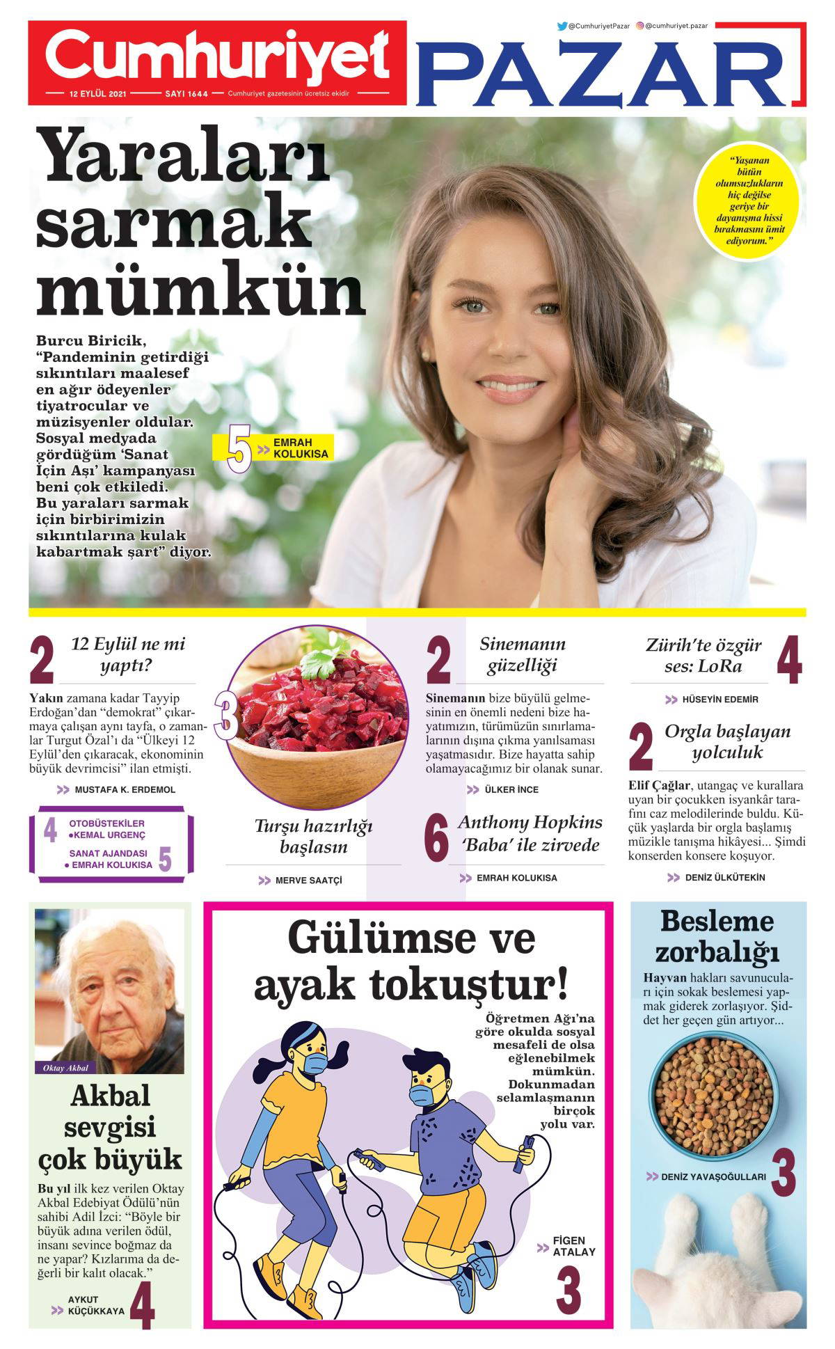 Başarılı oyuncu Burcu Biricik, Emrah Kolukısa’nın sorularını yanıtladı. Biricik, “Pandeminin getirdiği sıkıntıları maalesef en ağır ödeyenler tiyatrocular ve müzisyenler oldular. Sosyal medyada gördüğüm ‘Sanat İçin Aşı’ kampanyası beni çok etkiledi. Bu yaraları sarmak için birbirimizin sıkıntılarına kulak kabartmak şart” diyor.