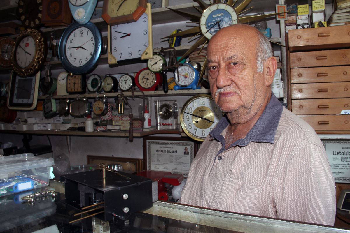 Giresun'un Bulancak ilçesinde küçücük dükkanında üçüncü kuşak olarak saat tamircisi olarak mesleğini ilerleyen yaşına rağmen devam ettiren Ahmet Akoğlu, zamana inat son nefesine kadar sürdürmek istediğini söyledi.