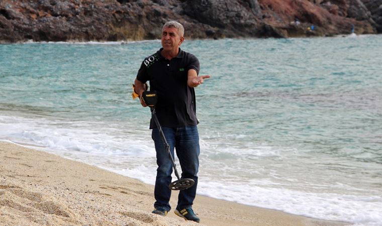 Antalya'nın Alanya ilçesinde dalgıçlık yapan Bahri Maviçiçek (52), boş zamanlarında dedektörle sahillerde altın ve para arıyor. Maviçiçek, denizin her zaman kendisine ekmeğini verdiğini söyledi.