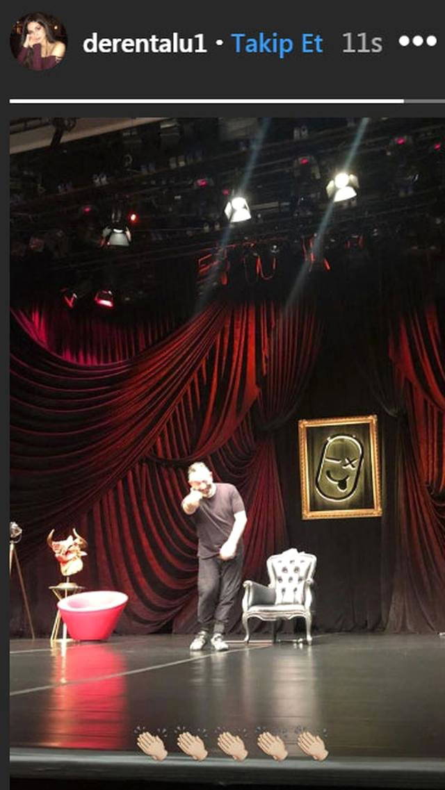 Defne Samyeli'nin kızı Deren Talu, geçen gün komedyenin gösterisini izlemeye gitti. Deren Talu gösteri sırasında kendisine poz veren Cem Yılmaz'ın fotoğrafını Instagram'ın hikaye bölümünden alkış emojisi koyarak paylaştı.