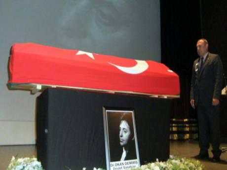 Devlet sanatçısı Okan Demiriş için Kadıköy Süreyya Operası binasında tören düzenlendi. Demiriş'in Türk Bayrağı'na sarılı naaşının sahneye konulmasının ardından saygı geçişinde bulunuldu.