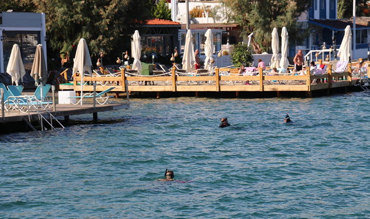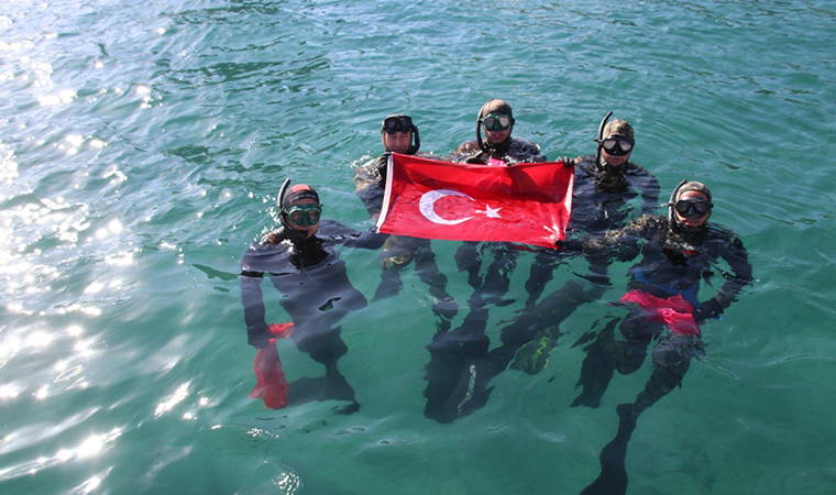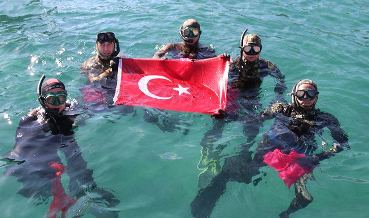 Bu yıl ilk kez Gölköy'de dalış yaparak denize atılan çöpleri toplayan Bodrum Belediyesi Dalış Ekibi, etkinlik öncesi su üzerinde Türk Bayrağı açarak 29 Ekim Cumhuriyet Bayramını kutladı.