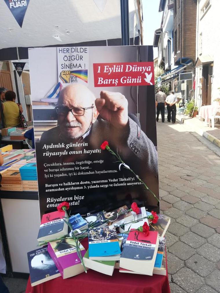 Senarist, şair ve yazar Vedat Türkali’nin aramızdan ayrılışının 3. yıldönümünde Mudanya 1. Kitap Fuarı’ndaki Ayrıntı Yayınları standında bir köşe hazırlandı.