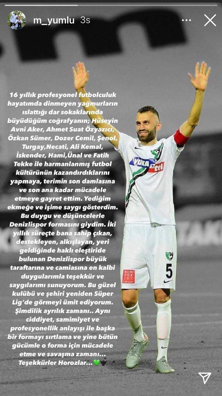 Süper Lig'den düşen Yukatel Denizlispor'da futbolculardan Mustafa Yumlu, takımından ayrıldığını bildirdi.