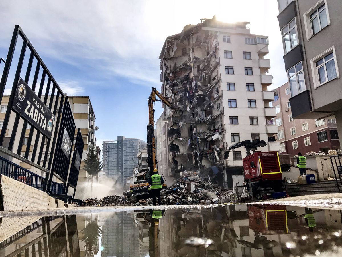 Kartal'da çöken Yeşilyurt Apartmanı'nın bitişiğindeki 10 katlı Yunus Apartmanı'nın yıkım işlemleri devam ederken. / AA