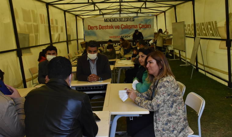 Deprem felaketinden sonra Menemen Belediyesi olarak Menemenliler ve depremzede hemşerileri için ellerinden gelen yardımları yaptıklarını, ancak önceliklerinin çocuklar olduğunu belirten Menemen Belediye Başkanı Serdar Aksoy, “Çocuklarımızın bu süreçten en az yara alarak geçmeleri için elimizden geleni yapıyoruz. Aşık Veysel Rekreasyon Alanı’na önce Çocuk Oyun Çadırı kurduk, şimdi ise Ders Destek ve Çalışma Çadırı. Minik yavrularımızın derslerinden geri kalmamaları, bu süreç geçtikten sonra eğitim hayatlarında zorluk yaşamamaları için Menemen Belediyesi öğretmenleri ellerinden geleni yapacaklar. Her şey çocuklarımız için…” dedi.