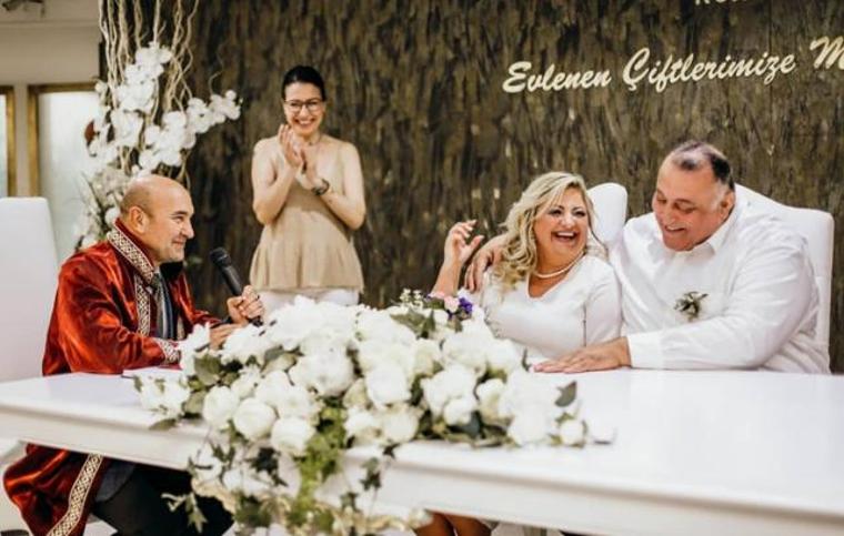 Konak Belediye Başkanı Mimar Abdül Batur, İzmir Demokrasi Üniversitesi Rektörü Prof. Dr. Bedriye Tunçsiper, Cumhuriyet Halk Partisi (CHP) İzmir Milletvekili Bedri Serter, İzmir Kadın Kuruluşları Birliği (İKKB) Başkanı Huriye Serter, Prof. Dr. Çimen Gülben Olguner ve İzmir Büyükşehir Belediye Başkanı Tunç Soyer’in eşi Neptün Soyer’in şahitliğinde birbirlerine ‘evet’ diyen çiftin nikahını ise İzmir Büyükşehir Belediye Başkanı Tunç Soyer kıydı.