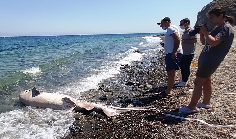 Datça İlçe Tarım ve Orman Müdürlüğü’nde görevli Su Ürünleri Mühendisi Servet Kutlu, “Vatandaşların ihbarı üzerine bölgeye geldik. Geldiğimizde kıyıya vurmuş hareketsiz bir şekildeydi. Bozcamgöz türünde derinlerde yaşayan altı solungaçlı bir köpekbalığı olduğunu belirledik. Yaklaşık 3 metre boyunda 200 kilogram bir ağırlığı olduğunu tahmin ediyoruz. Karnındaki şişlikten büyük ihtimalle yavru bırakma veya besleme amaçlı kıyıya yaklaşmış olabilir. Üzerinde herhangi bir darp izi ve av aracından kaynaklı bir yara izi görülmedi” diye konuştu.