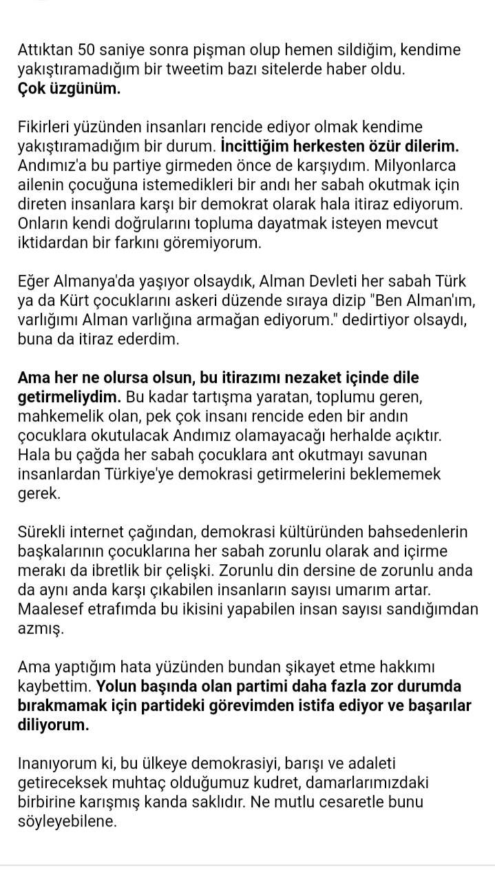 Çok özür dilerim. Gerçekten üzgünüm. Istifa ediyorum. pic.twitter.com/6bQqsqalQQ