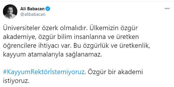 BABACAN: KAYYUM REKTÖR İSTEMİYORUZ