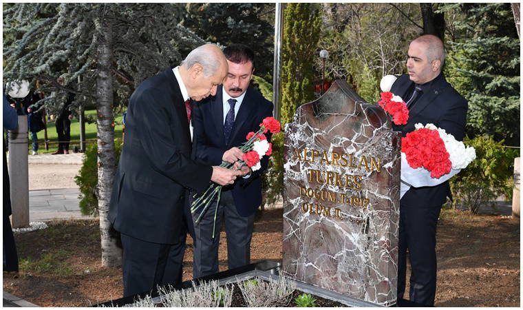 Bahçeli'ye, Alparslan Türkeş'in Beştepe'deki anıt mezarını ziyaretinde korumaları ve küçük bir grup eşlik etti. Yeni tip koronavirüsle (Kovid-19) mücadele kapsamında alınan tedbirler nedeniyle resmi anma töreninin yapılmadığı anıt mezarda, Bahçeli ve yanındakilerin herhangi bir önlem almadıkları ve sosyal mesafeyi korumadıkları görüntüler dikkat çekti.