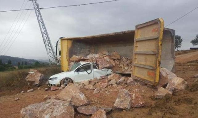 Feci kazada devrilen kamyon kasası ile üzerinde bulunan dev kaya parçalarının altında kalan otomobilin sürücüsü Tokat, olay yerinde hayatını kaybederken, araçta bulunan Burak Taşkın ile son anda dışarı çıkmayı başardı. Kazada Taşkın ile kamyon şoförü Muki ve diğer otomobil sürüvcüsü Başaran yaralandı. Çevredekilerin ihbarı üzerine olay yerine 112, jandarma ve itfaiye ekipleri sevk edildi. İtfaiye ekipleri Gökhan Tokat’ın cansız bedenini taşların altından çıkarırken, yaralılar sağlık ekiplerinin ilk müdahalesinin ardından Susurluk Devlet Hastanesi’ne kaldırıldı.