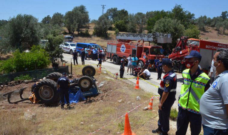 Kontrolden çıkan traktör, devrilirken, Şahin de altında kaldı. Kazayı görenlerin bildirmesi üzerine bölgeye jandarma, itfaiye ve sağlık ekipleri sevk edildi. Antalya Büyükşehir Belediyesi itfaiye ekibi, yaşamını yitirdiği belirlenen Şahin'in cansız bedenini vinçle traktörün altından çıkardı.