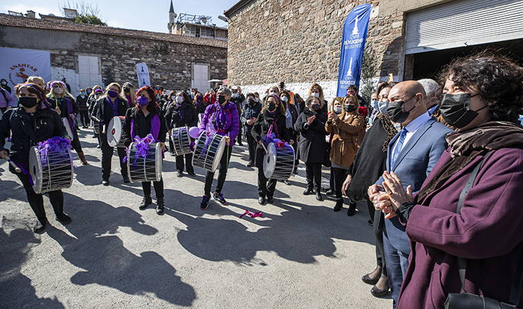 İzmir Büyükşehir Belediyesi Başkan Vekili Mustafa Özuslu ve Müyesser Özuslu, Karşıyaka Belediye Başkanı Cemil Tugay ve eşi Öznur Tugay, Selçuk Belediye Başkanı Filiz Ceritoğlu Sengel, Bayraklı Belediye Başkanı Serdar Sandal'ın eşi Aylin Sandal, İzmir Büyükşehir Belediyesi Genel Sekreter Yardımcısı Ertuğrul Tugay, İzmir Büyükşehir Belediyesi Meclisi Toplumsal Cinsiyet Eşitliği Komisyon Başkanı Nilay Kökkılınç ve kadın kooperatiflerinin başkanlarının katıldığı açılış töreni İzmir Büyükşehir Belediyesi Kadın Ritim Topluluğu’nun gösterisi ile renklendi.