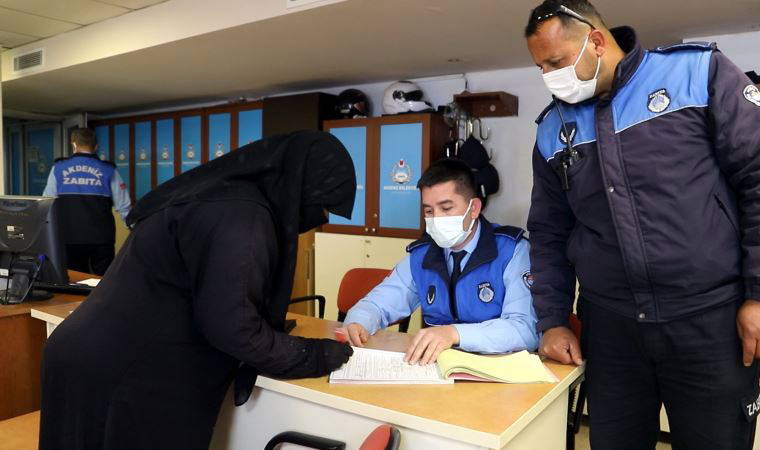 Ekipler, dilendikleri tespit edilen iki, izinsiz satış yaparak kaldırım işgaline yol açan bir kadını, yakalayarak Akdeniz Zabıta Müdürlüğü'ne götürdü.