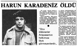 Kolunun kesilmesi ile kurtarılabilmesinde de çok geç kalındığını biliyordum. Hastalık hızla yayılırken, Harun Karadeniz sayılı günlerini en yararlı kullanabilme yolunda çalışıp duruyordu. Ağırlıklı kitap çalışmasına yöneldiğinin duyumunu almıştım. Ama toplumsal etkinliklerden de kaçmıyordu. 8 Nisan 1975 tarihinde yayımlanmış 9. sayfa haberindeki etkinlikte ben de konuşmacıydım. Maçka Maden Fakültesi’nde düzenlenen “Demokratik Üniversite ve Yönetmelik” konulu toplantıda salona sığamayan, yerleri, merdivenleri doldurmuş öğrenci kalabalıkları, soluksuz Harun’un yol göstericiliğinde söylediklerini dinliyorlardı.