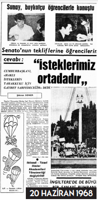 Elbette yaşandığı sıcak günlerin gazetemizin birinci sayfası başta, sığmadığı ölçeklerde pek çok sayfamızda paylaşılmış yaşanmışlıklar üzerinden paylaşımların yeri ve zamanı değil. Ülkemize özgü yaşanmışlıkları üzerinden günümüze yasıtılmış pek çok belgesel de var. İşgallerin kaldırılması günlerinde yoğunlaşmış eğitim, üniversiteler reformu tartışmaları üzerinden 28 Haziran tarihli gazetemizin menşetinden haberi sadece paylaşmak istedim. Sunay’ın boykotçu öğrencilerle yaptığı görüşmeler sonrası manşetimizin içinden Harun Karadeniz’in fotoğraflı açıklamalarına dikkatinizi çekmek istedim. Eğitimde ilköğretimden başlayan bir devrim istediklerini söylüyor. Birinci sayfamızın haberleri bir bütünlük içinde, aslında günümüzde yaşananlar için de çok öğretici, dersler verici içerikleriyle dikkat çekiyor.