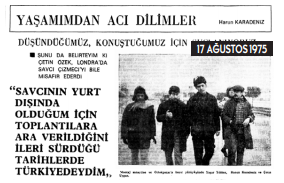 “Suçtan büyük olasılıkla beraat edecek üyelerinin işkence içinde ölüme zorlanması olayı, değil özgürlükçü demokrasiye, hiçbir devlet anlayışına sığmaz” saptamasını yaparak insanlığa aykırı bu durumun giderilmesini istiyor. 15 Aralık 1. sayfa kupüründe arkadaşımız Nuri Özdeniz’in raporlara dayalı haberi, her şeyi çok yalın açıklıyor. 24 Aralık tarihli gazetemizde ancak Harun Karadeniz’in tedavi için aynı günün tarihi ile Londra’ya gideceğinin haberi yer alıyor. 22 Şubat 1974 günlü haberimizde Londra’da kolu kesilen Harun Karadeniz için Almanya’da Türk işçilerinin kampanya açtıkları haberi veriliyor.