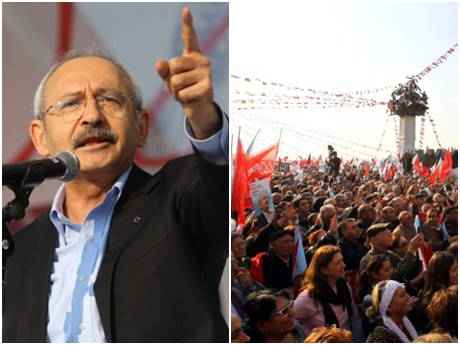 Kemal Kılıçdaroğlu, "Hükümetin İzmir'e diz çöktürmeye, Çin işkencesi yapmaya çalıştığını, hedefin Aziz Kocaoğlu olmadığını, Türkiye'yi karanlığa götürme sürecinde İzmir'in hedef seçildiğini ancak buna İzmir'in izin vermeyeceğini'' söyledi. Kılıçdaroğlu, şöyle konuştu: ''Baktılar ki İzmir'den, İzmirlilerden umut yok, umudu savcıya bağladılar. Savcı çıkacak, baskı kuracak, şiddet uygulayacak, sabahın köründe insanları alacak, ondan sonra kalkacak diyecek ki, 'Ben İzmirlilere farklı bir şey vadediyorum, güzel bir dünya vadediyorum.' Kime vadediyorsun, 'gavur İzmir' dediğin kente vadediyorsun. İzmirli sana inanacak mı? İzmir onlara gerekli dersi sandıkta verecektir. Sabahın köründe evleri basacaksın, insanları alacaksın götüreceksin, sorgu sual çekeceksin. Sonra çıkacak Recep Tayyip Erdoğan, 'Efendim diyecek ben yargının işine karışmam.' İnanıyor musunuz? Samimi söylüyorum ben de inanmıyorum. Yahu arkadaş Oslo görüşmelerine özel temsilci gönderdin, oradaki tutanaklara bak. Sen özel mahkeme kurdun, özel yargıçlar görevlendirdin, 'başınıza bir şey gelirse bana söyleyin' dedin. Yargıya müdahale ettin, biz sana nasıl güveneceğiz. Yargı senin arka odanda verdiğin kararı onaylayan bir makam haline geldi. Bunu Türkiye'de bilmeyen kim var.''