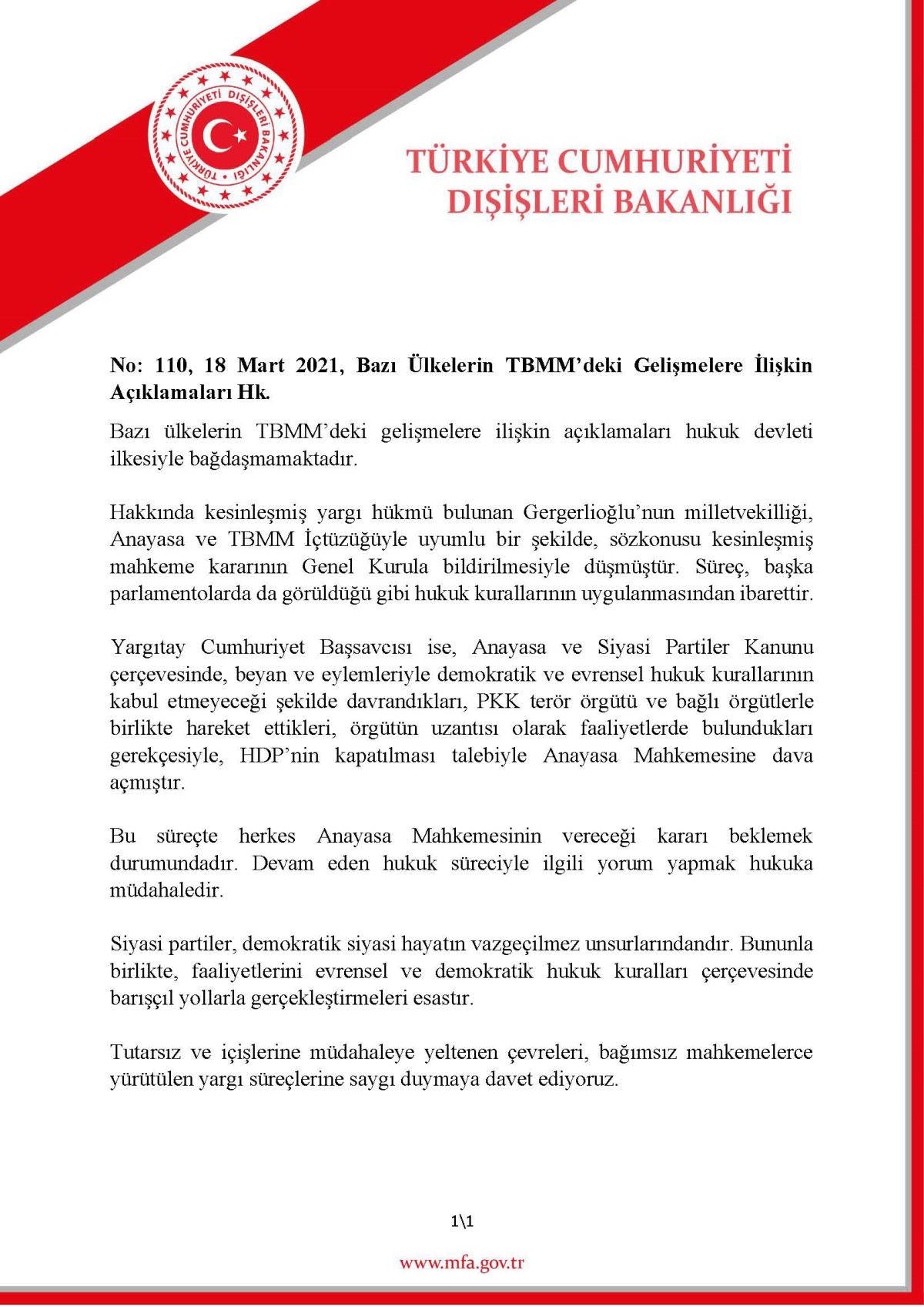 Dışişleri Bakanlığı'nca yapılan açıklama şöyle: