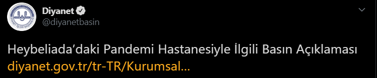 “Bazı medya organlarında Diyanet İşleri Başkanlığı’na 2018 yılında tahsis edilen İstanbul Heybeliada’daki araziyle ilgili olarak yer alan haberlere ilişkin aşağıdaki açıklamanın yapılmasına ihtiyaç duyulmuştur.