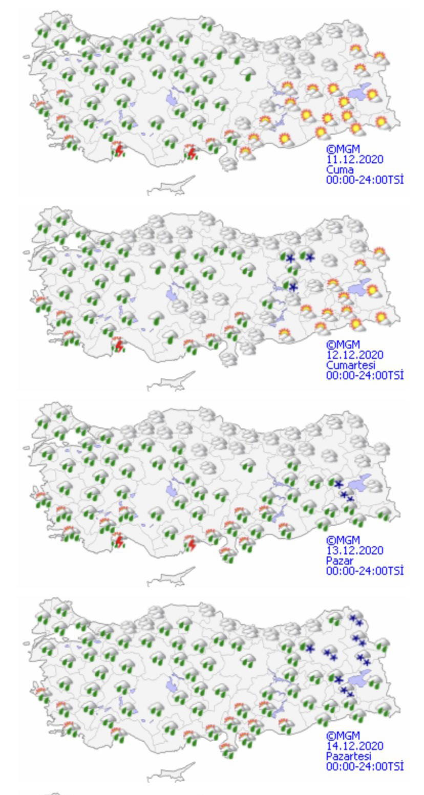 Zira Meteoroloji Genel Müdürlüğü'nün raporuna göre bölge bölge hava durumu şöyle:
