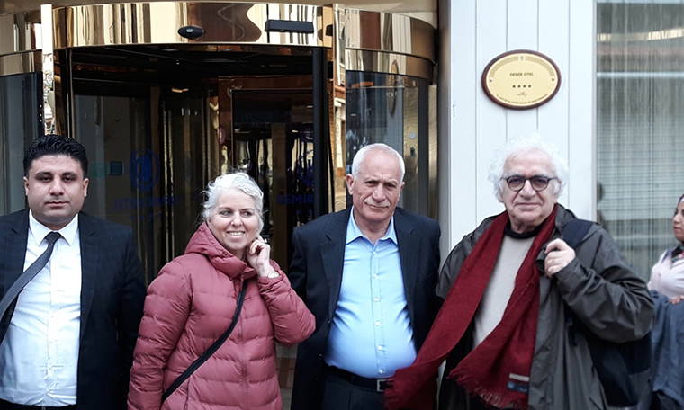 Mehmet Emin Kardaş ile yukarıda isimlerini saydığımız ittifaktaki T-KDP partisinin lideriyle görüşüyoruz. Türkiye Demokratik Kürdistan Partisi. Barzani’ye yakın. Masasının arkasında Molla Mustafa Barzani, Seyit Rıza (aşiret lideri) , Şeyh Sait ve Abi Kazi Muhammed (kısa süreli var olan Mahabat Kürt Cumhuriyeti Devlet Başkanı) resimleri var.