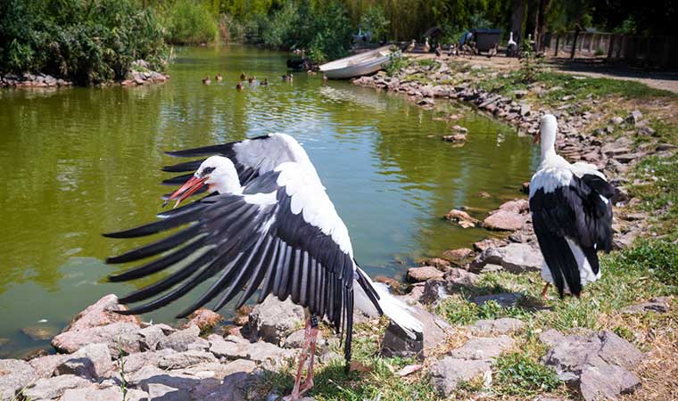 Doğada ikisi yaralı halde bulunan, diğer ikisi de güçten düştüğü için İzmir Büyükşehir Belediyesi Doğal Yaşam Parkı'nda tedaviye alınan dört leylek, veteriner hekimlerin desteğiyle sağlığına kavuştu. Ege Üniversitesi Fen Fakültesi Biyoloji Bölümü Öğretim Üyesi Doç. Dr. Ortaç Onmuş, yaklaşık iki yıldır burada bulunan leyleklerin doğaya bırakılmadan önce sağlık durumlarını kontrol etti. Gaga, kanat ve bacak uzunlukları ölçülen leylekler tanınması, izlenmesi ve korunması için halkalandı. Ardından Doğal Yaşam Parkı'ndaki Pekin Göleti alanı içerisine bırakılan leylekler, bir süre çevreyi inceledi. Daha sonra kanat çırparak havalanan leylekler, Doğal Yaşam Parkı'ndan ayrıldı.