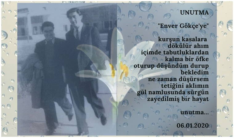 Bütün bunların yanında en önemlisi de, sizinle konuştuğumuz bu armağan kitabı hazırlamak oldu. Unutmadan söyleyim, Enver Gökçe Dostları Grubu’nu kurumsal bir yapıya dönüştürecek hukuki çalışmalara başlanması oldu. 2020 yılı bitmeden başlattığımız çalışmayla 2021 yılı içinde “ENVER GÖKÇE DOSTLARI DERNEĞİ” olarak kurumsal bir kimliğe kavuşturmuş olacağız.