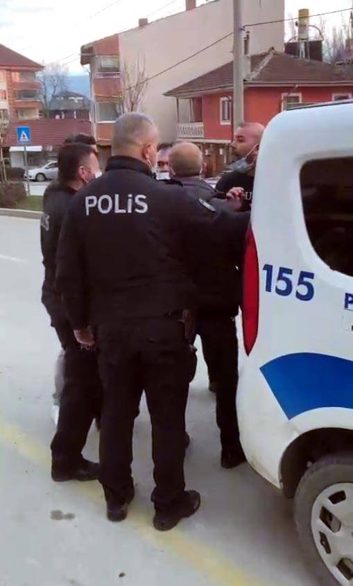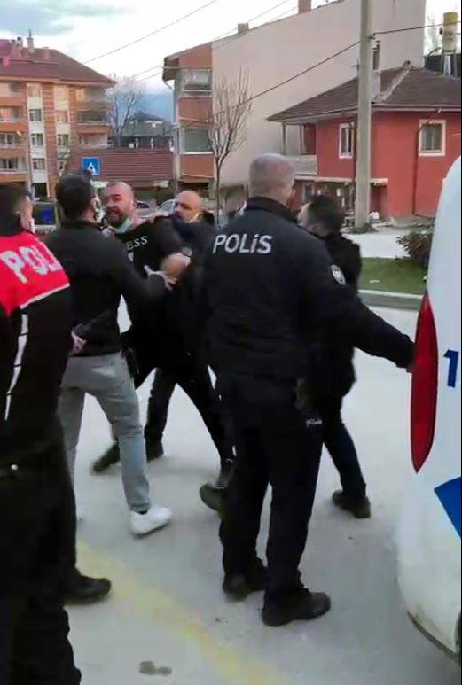 Olay yerine gelen polis ekipleri ile tartışan ilaç mümessili Çağlar A. polislere, "Sizi Irak'a, Suriye’ye gönderirim" diyerek tehditler savurdu. Arbede bir yurttaş tarafından cep telefonu kamerasıyla kaydedildi. Takviye ekiplerin de gelmesiyle polis aracına bindirilen Özkan V. ve Çağlar A. alkol muayenesi için İzzet Baysal Devlet Hastanesi Köroğlu Ünitesi’ne götürüldü. Bu sırada hastanede polis ekipleri ile tartışmaya devam eden iki kişi, polis ekiplerine küfür ve hakaret ederek, iddiaya göre hastane içerisindeki eşyalara zarar verdi.