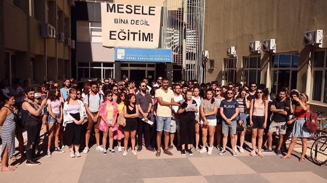 Yaklaşık 2 bin öğrencisi ile 150 kişilik akademik ve idari personeli bulunan DEÜ Güzel Sanatlar Fakültesi’nin Narlıdere’deki kampusunun, Mühendislik Fakültesi görevlilerinin denetiminde depreme dayanıksız olduğu tespit edildi. Bunun üzerine fakültenin 2 yıl için Buca ilçesindeki Tınaztepe Yerleşkesi’ne taşınması kararı alındı. Yeni yerleşkedeki fiziki yetersizlikler iddiasıyla GSF öğrencileri konuya tepki göstererek, mezuniyet töreninde kürsüye çıkan dekana arkalarını dönerek, alkışlarla protesto ederek eylem düzenlemişti. Seslerini duyurmak için çalışan öğrenciler İzmir Büyükşehir Belediye Başkanı Tunç Soyer’den destek istemişti. İzmir Büyükşehir Belediye Başkanı Tunç Soyer, binanın yeniden yapımı ile ilgili destek sunmaya hazır olduklarını açıklamıştı. Rektörlük ise Soyer’in bu çağrısına olumlu yanıt vermişti. Öğrencilerin okullarına sahip çıkmasına, akademisyenler, STK, İzmir Barosu, öğretim üyeleri, üniversiteler, TMMOB ve sanatçılarla, okul mezunları açıklama yaparak öğrencilerin yanında olduklarını dile getirdi. İzmir Barosu yürütmenin durdurulması için dava açtı.