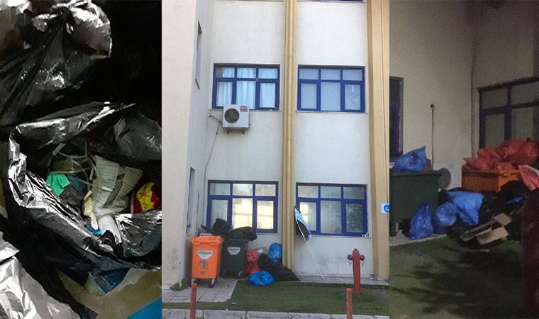 Tıbbi atıkların korunaksız şekilde açık alanlara bırakılması ise pes dedirtiyor. Kırmızı renkli poşetlerin içinde görülen enfekte atıklar koridorlara, çöp kutularının yanına, hastane bahçesinin duvar kenarlarına atılıyor. Oysa bu uygulamalar Tıbbi Atıkların Kontrolü Yönetmeliği'ne aykırı. Yönetmeliğe göre, tıbbi atıkların ayrı toplanması, geçici depolanması, taşınması ve bertaraf edilmesi gerekiyor. Tıbbi atıkların, normal çöp kutularına atılması da yasak. Bazı yemek çöplerinin içinde de tıbbi atık malzemeleri görülüyor.