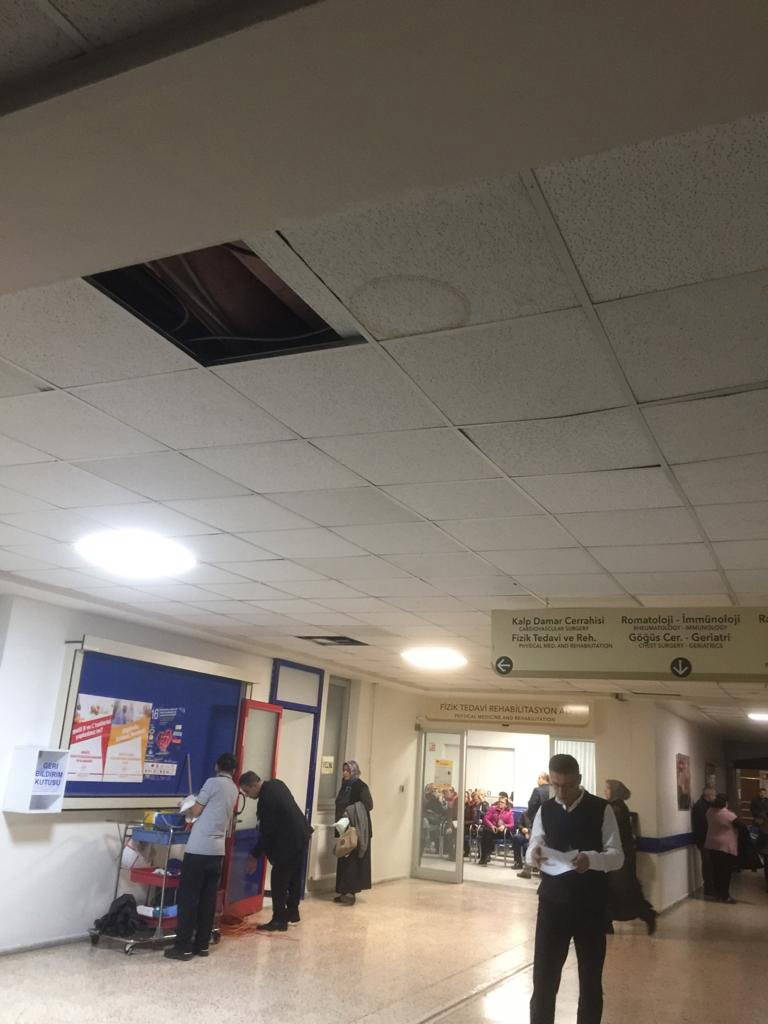 Hastane asansörlerinin birçoğu bozuk. Çalışan asansörlerden ise gıcırtı sesleri geliyor.Bazı kısımlarda tavandan su sızıntıları oluyor. Tavandaki açıklıklar göze çarpıyor.