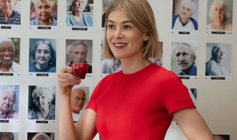 I Care A Lot’ta, Pike’ın hayat verdiği ve açılış sekansında “Dünyada iki çeşit insan vardır: Kapanlar ve Kapılanlar. Avcılar ve Avlar. Aslanlar ve Kuzular. Ben bir dişi aslanım.” sözleriyle kendisini tanıtan Marla Grayson, vahşi doğasıyla tezat bir isme sahip olan bir karakter. İronik bir biçimde, İsa’nın takipçilerinden Mary Magdalene’den gelen bir ad taşıyan Marla, sevgilisi ve iş ortağı Fran (Eiza González) ile birlikte bakıma muhtaç veyahut muhtaç olmasa bile öyle olduğunu iddia ettiği yaşlıların yasal vasiliğini yapan bir kadın. İş birliği yaptığı doktor ve bakım evi sahipleriyle birlikte, tamamen “hukuki” yollardan yaşlı insanları huzur evlerine hapsettiren ve kişisel eşyalarını, evlerini, hatta bankadaki paralarını dahi yönetme hakkını elde eden; dolayısıyla da bunun üzerinden kendisine devasa bir servet edinen nitelikli bir dolandırıcı… Marla’nın zavallı insanlar üzerinden yürüttüğü bu acımasız planlar, “ganimetlerinin” kimsesizliği sayesinde ise sömürüye elverişli bir sistemde tıkır tıkır işliyor. Ta ki sömürünün ucu, kendisi kadar acımasız başka birine uzanana kadar…